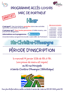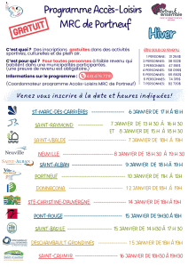 inscriptions HIVER au programme accès-loisirs MRC de Portneuf